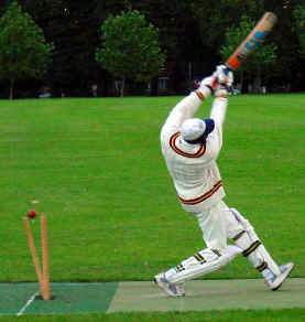 | Stranded: Fred Barrass (Old Fallopians) misses a Pat McGuinness